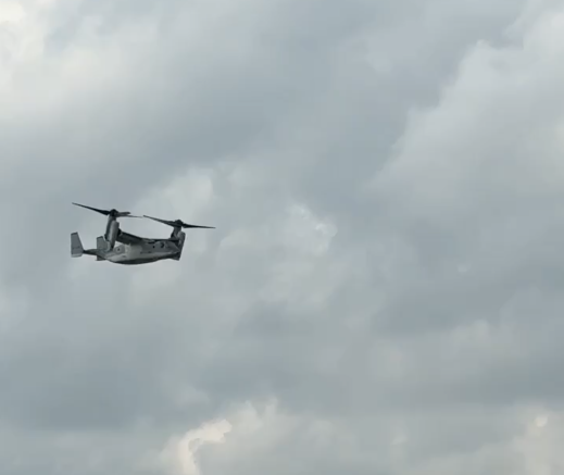 青空の下で見るオスプレイは、迫力満点!